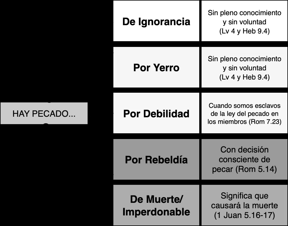 • La definición única y clara de la Biblia: el pecado es transgresión de la ley de Dios, ya sea en actos visibles (externos) o invisibles (internos: pensamientos, sentimientos, deseos albergados como codicia, enojo, rabia, envidia, lujuria, etc.).